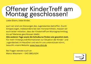 Anmeldung unter kindertreff@haus-drei.de
