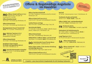 HausDrei E-Mail HausDrei bei Facebook HausDrei bei Instagram HausDrei bei Youtube Stadtteilkulturzentrum // Hamburg Altona-Altstadt